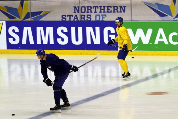 Ruotsin viimeiset lisäykset kokoonpanoon saapuivat Tukholmaan, kun Daniel ja Henrik Sedin sekä Alexander Edler vetivät ensimmäiset luistimenpiirtonsa MM-jäillä.