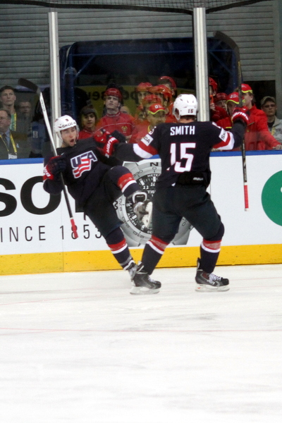 Tasaisen ottelun maalintekijöinä kunnostautuivat USA:n Brock Nelson sekä kahdesti osunut Tyler Johnson. Leijonien ainokaisen täräytti Tuukka Mäntylä.