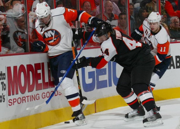 Timonen kaupattiin kesällä 2007 Philadelphia Flyersiin, ja siitä seurasta lienee tullut Timosen uran rakkain seura. Tässä mies syksyn harjoitusottelun alla.