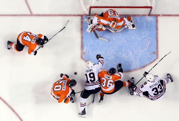 Timonen teki uransa sadannen NHL-maalin Buffaloa vastaan 5.3. 2011.