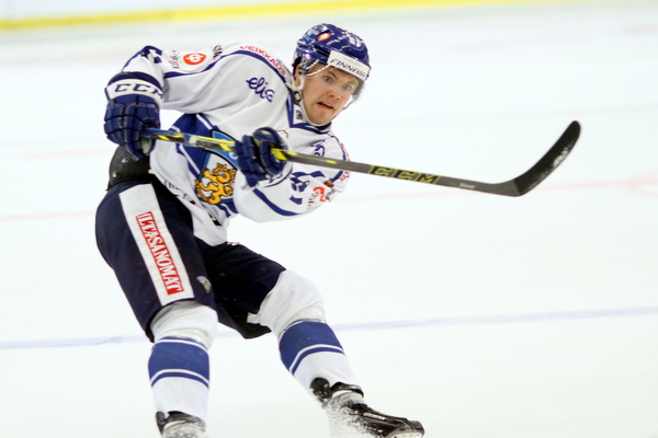 Maalissaan Huhtala esitteli terävää rannelaukaustaan, millä hän pääsi yllättämään Tshekin maalivahdin Dominik Furchin.