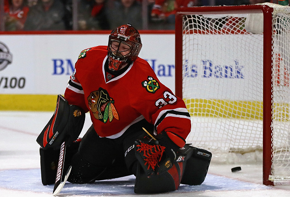 Kesän 2015 Stanley Cup -mestari on pelannut taalajäillä kivenkovan Chicagon paidassa pudotuspelit mukaan luettuna 80 ottelua hyvällä torjuntaprosenttikeskiarvolla 92,78.