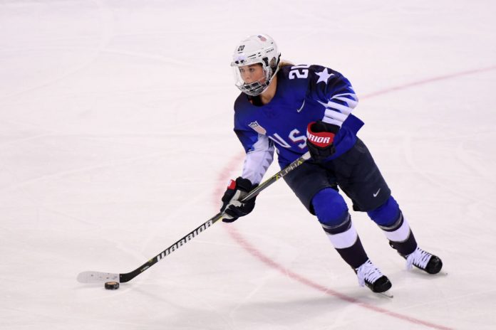 Minnesota Wild sai perjantain harjoituksiinsa vieraakseen viime helmikuussa USA:n naisten joukkueen mukana olympiakultaa Etelä-Koreasta napanneen Hannah Brandtin.