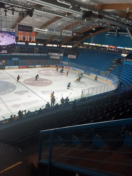 Tajusin paikan Isku Areenaksi puoli kuuden maissa, kun hallissa alkoivat kuulumaan legendaarisen Ili Varmavuon kuulutukset vähän ennen iltakuutta. Musiikkinkin oli – tyhjille katsomoille! Ilmapiiri Pelicansin ja SaiPan ottelussa oli apaattisen lisäksi ikävä kyllä tympeä, kenties jopa naurettava.