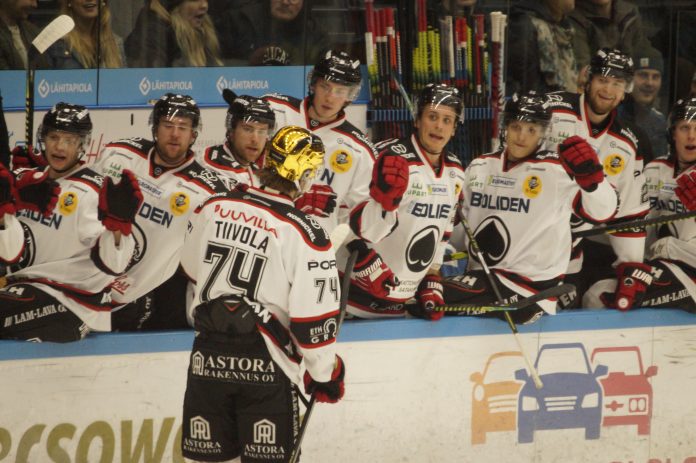 – Tuli ”vähän” lunta tupaan… Ässien Twitterissä velmuiltiin kolmen maalin johdon sulettua kankkulan kaivoon.