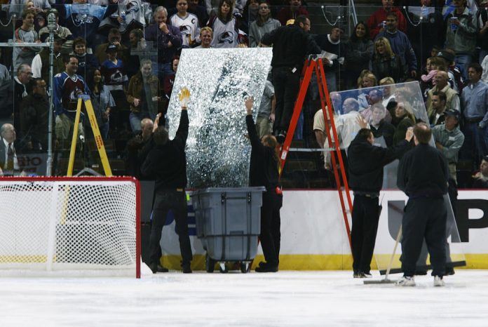 Jääkiekon NCAA-liigan pelissä nähtiin äskettäin tajuton lämäri, jolla University of Connecticutin hyökkääjä Jonny Evans, 23, mäjäytti pleksin tuhannnen pirstaleiksi.