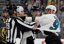 Tähtihyökkääjä lensi suihkuun tuomarin päälle käymisestä ottelussa Vegas Golden Knightsia vastaan. Kane...