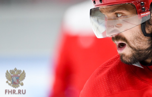 Aleksandr Ovetshkin ehti ensimmäisenä onnittelemaan Venäjän päävalmentaja Oleg Znaroksia MM-pronssista.