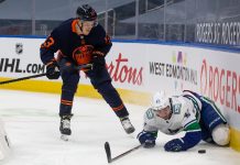 Edmonton Oilers aloitti NHL-kautensa tappiolla Vancouver Canucksia vastaan. Kuokkaan tuli numeroin 3-5.