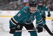 Burrows ja Sharksin puolustaja Dylan DeMelo...