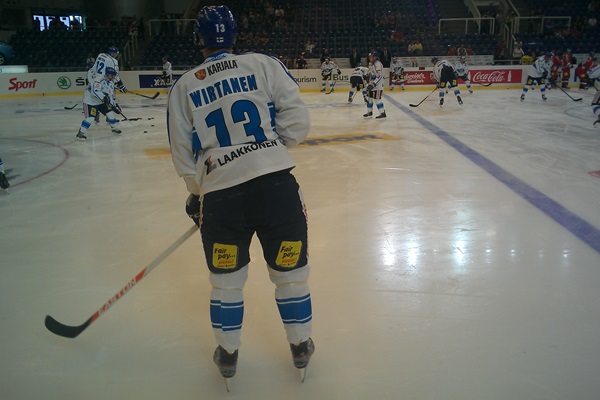 Leijonien puolella Kärpistä edustamassa on Juha-Pekka...