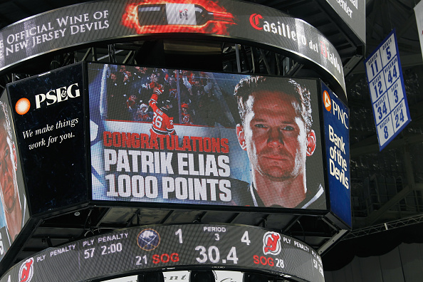 New Jersey Devilsin tshekkiläishyökkääjä Patrik Elias rikkoi upean rajapyykin ottelussa Buffalo Sabresia vastaan.