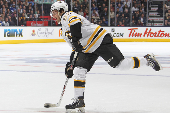 Boston Bruinsin tulokashyökkääjä Seth Griffith punnersi näyttävän osuman ottelussa New Jersey Devilsiä vastaan.