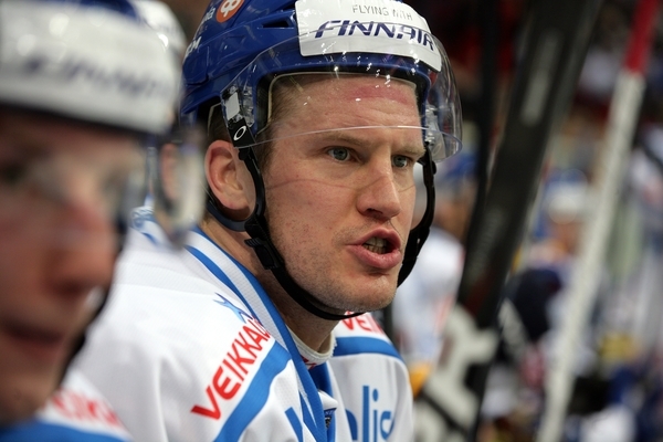 Suomen puolustuksen johtohahmo ja maalin edustan kovaotteinen luutija Ossi Väänänen jäi harmittelemaan Leijonien heikkoa alkua illan pelissä.