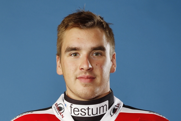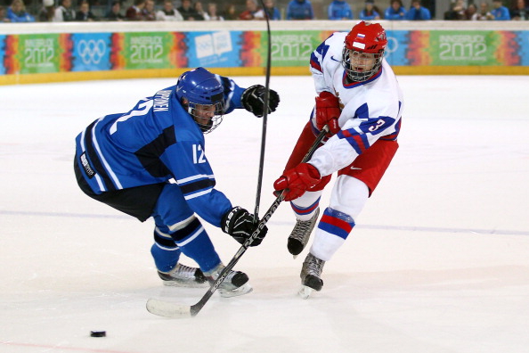 USHL-joukkue Sioux City Musketeersia edustava suomalaispuolustaja Markus Kojo näytti taklausvoimaansa Venäjän Ufassa pelattavassa juniorijoukkueiden World Cup -turnauksessa.