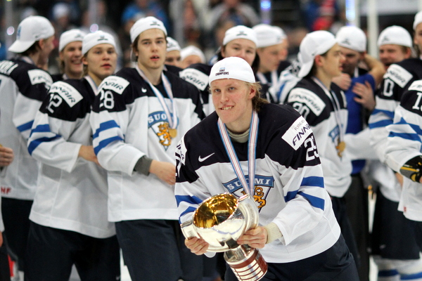 Kasperi Kapanen upotti finaalissa Venäjää vastaan jatkoajalla kiekon pönttöön ja juhlat olivat valmiita alkamaan.