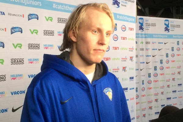 Patrik Laine iski finaalissa Suomen avausmaalin käytännössä ottelun ensimmäisestä paikastaan. Osuma oli Suomen ykkösketjun ensimmäinen turnauksen kahdessa viimeisessä ottelussa.