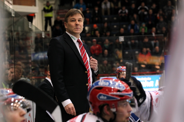 HIFK:n päävalmentaja Raimo Summanen kävi erittäin kuumana pelin aikana huudellen kovaa tekstiä...