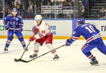 Ottelun avauserässä liukas hyökkääjä parkkeerasi kiekon kanssa vastustajan maalin...