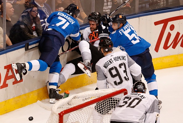 Leijonien hyökkääjän Leo Komarovin voimakas taklaus Pohjois-Amerikan junnujoukkueen Aaron Ekbladiin saattoi päättää tähtipakin turnauksen.